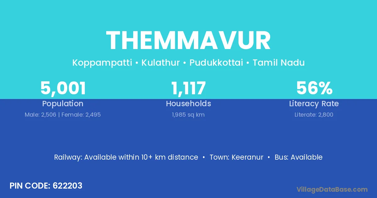 Keeranur is the nearest town to Themmavur village for major economic activities