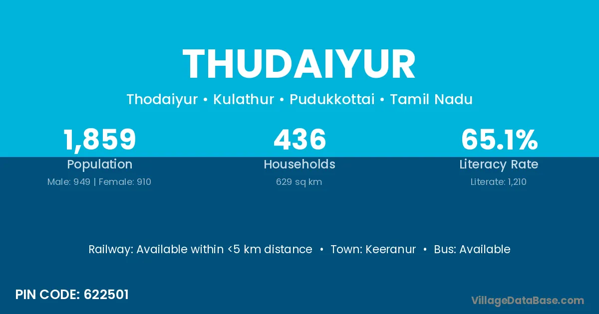 Keeranur is the nearest town to Thudaiyur village for major economic activities