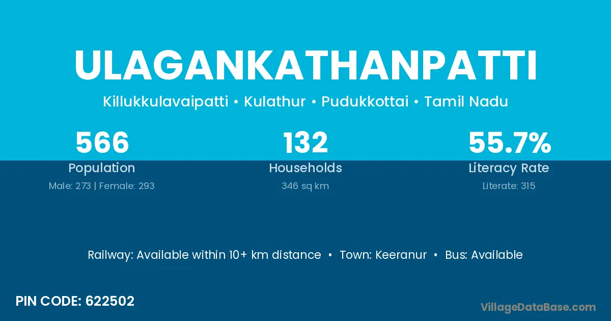 Keeranur is the nearest town to Ulagankathanpatti village for major economic activities