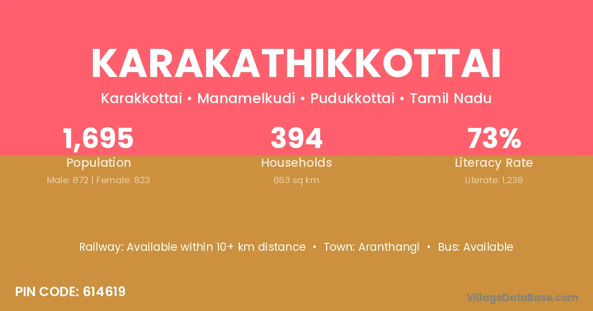 Karakathikkottai village has a total population of 1,695 people, of which 872 are males and 823 are females.