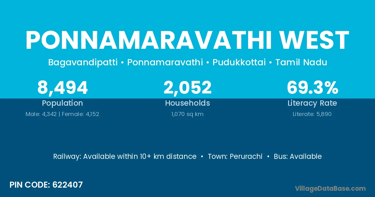 Perurachi is the nearest town to Ponnamaravathi West village for major economic activities