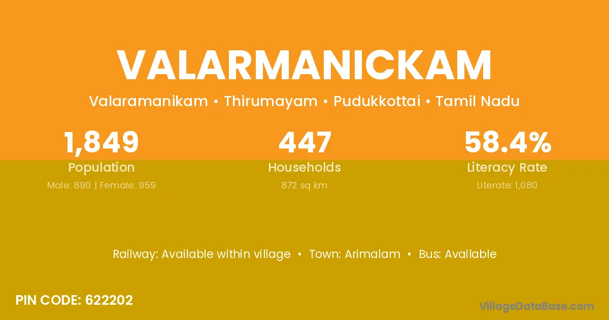 Arimalam is the nearest town to Valarmanickam village for major economic activities