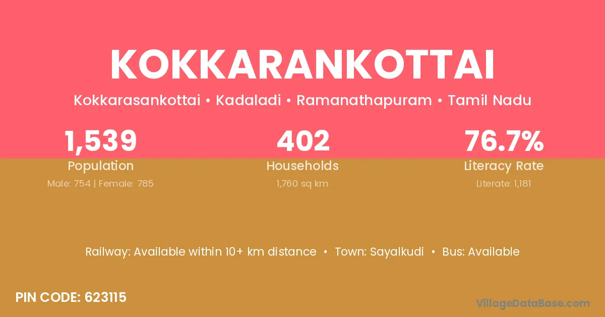 Kokkarankottai village has a total population of 1,539 people, of which 754 are males and 785 are females.