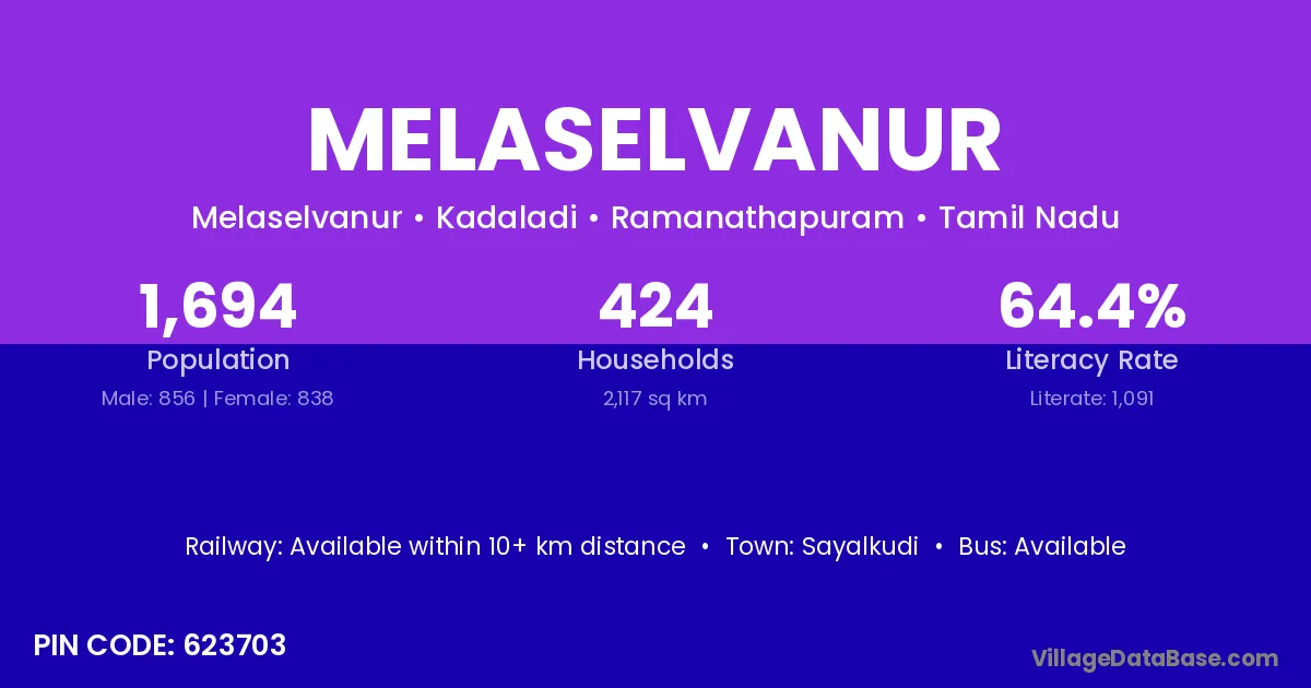 Sayalkudi is the nearest town to Melaselvanur village for major economic activities