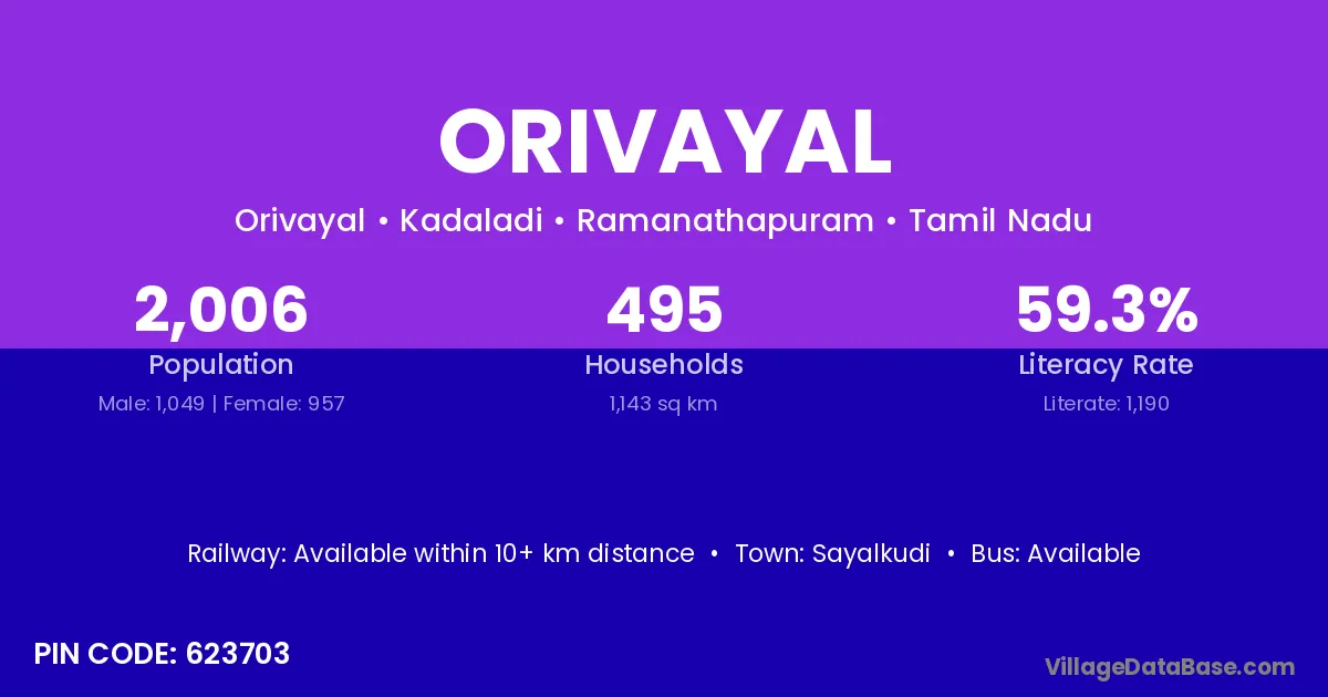 Sayalkudi is the nearest town to Orivayal village for major economic activities