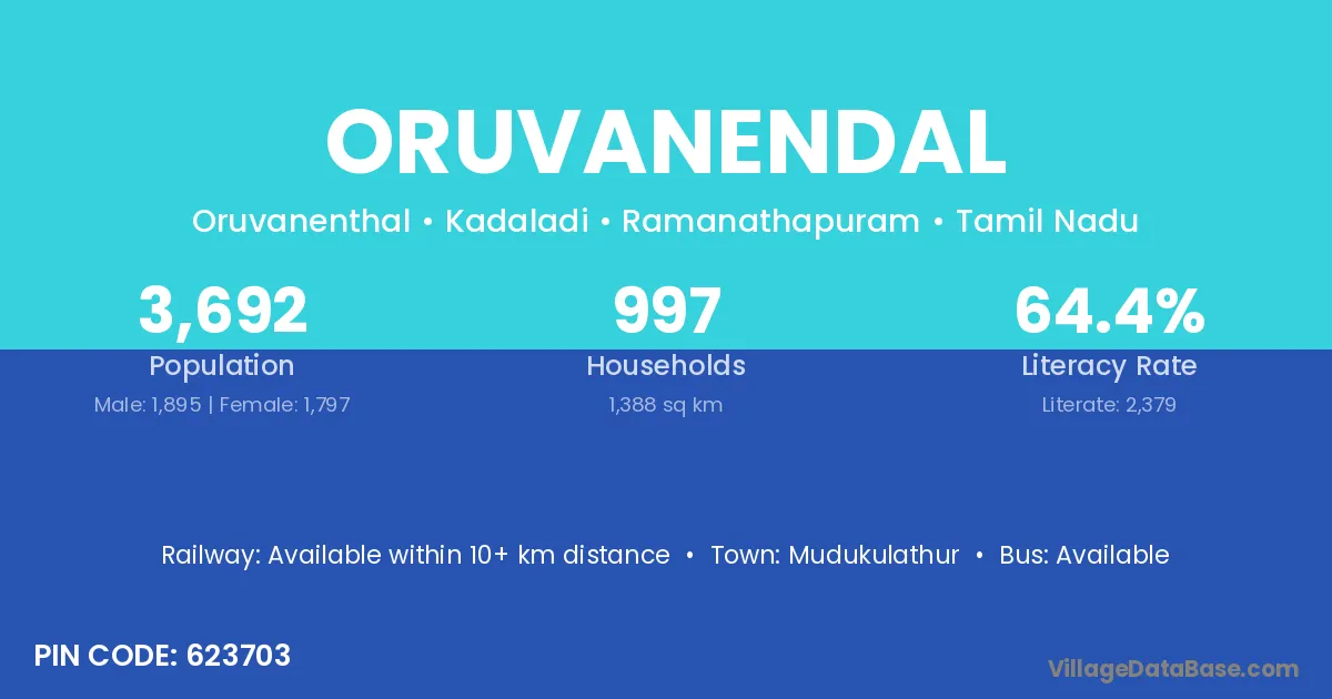 Mudukulathur is the nearest town to Oruvanendal village for major economic activities