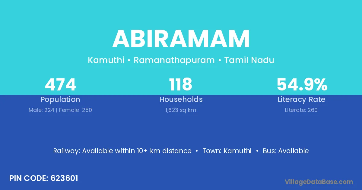 Kamuthi is the nearest town to Abiramam village for major economic activities