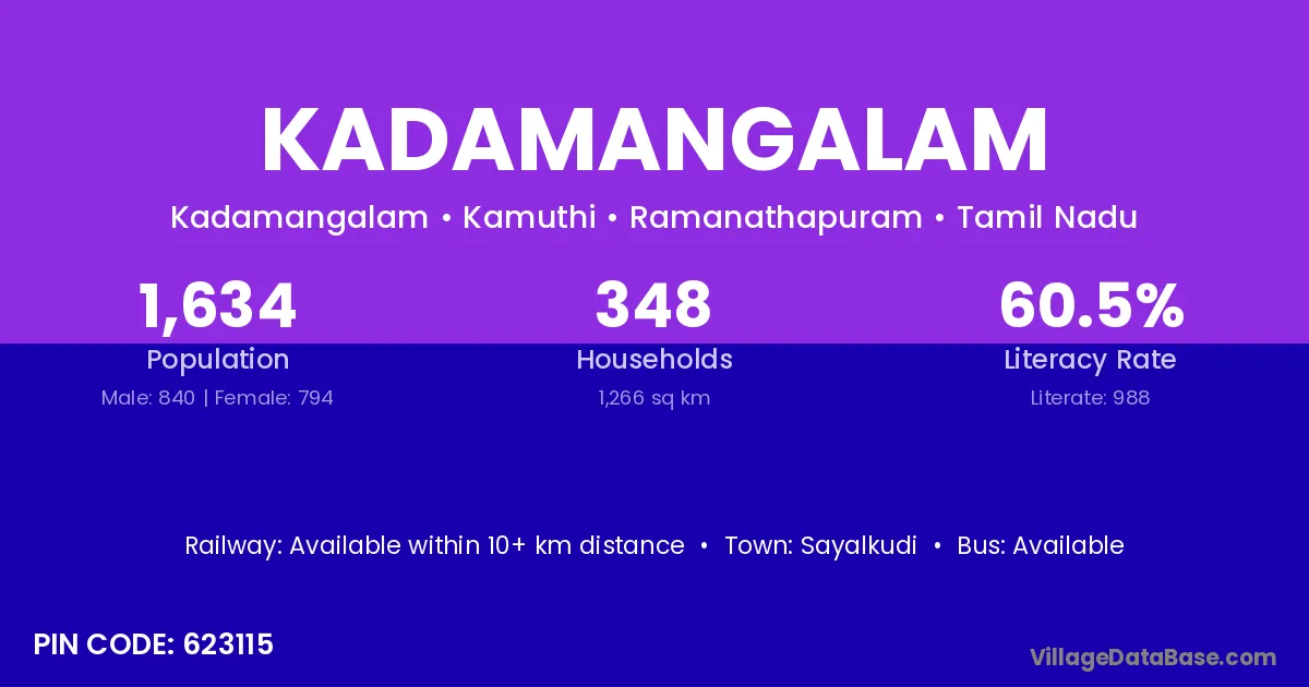 According to Census 2011 information, the village code of Kadamangalam village is 623115.