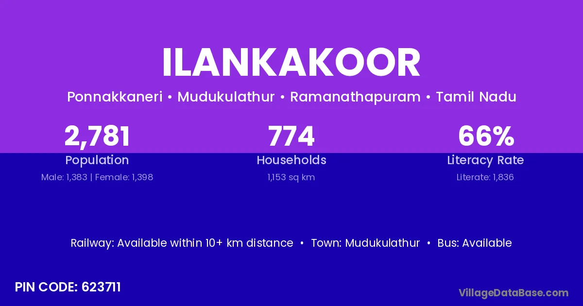 According to Census 2011 information, the village code of Ilankakoor village is 623711.
