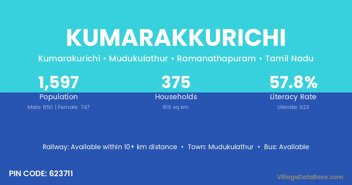 Mudukulathur is the nearest town to Kumarakkurichi village for major economic activities