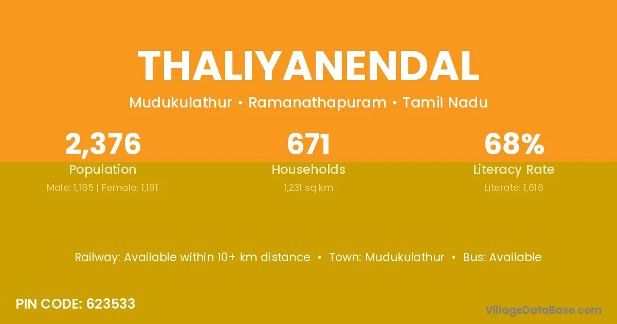 Mudukulathur is the nearest town to Thaliyanendal village for major economic activities