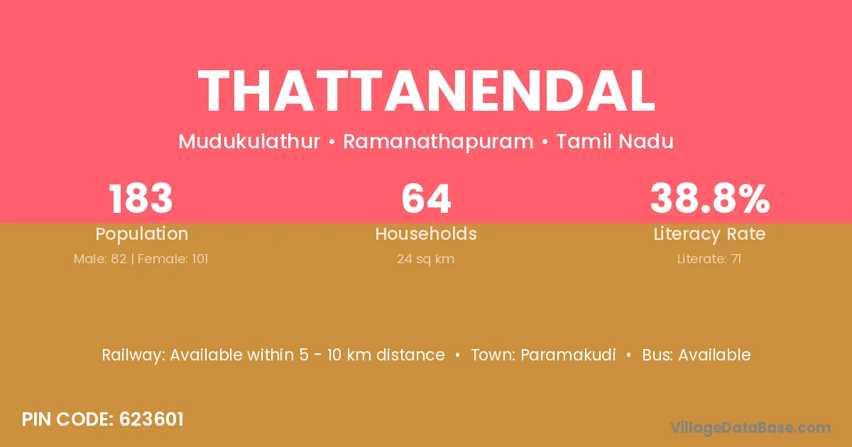 Thattanendal village has a total population of 183 people, of which 82 are males and 101 are females.