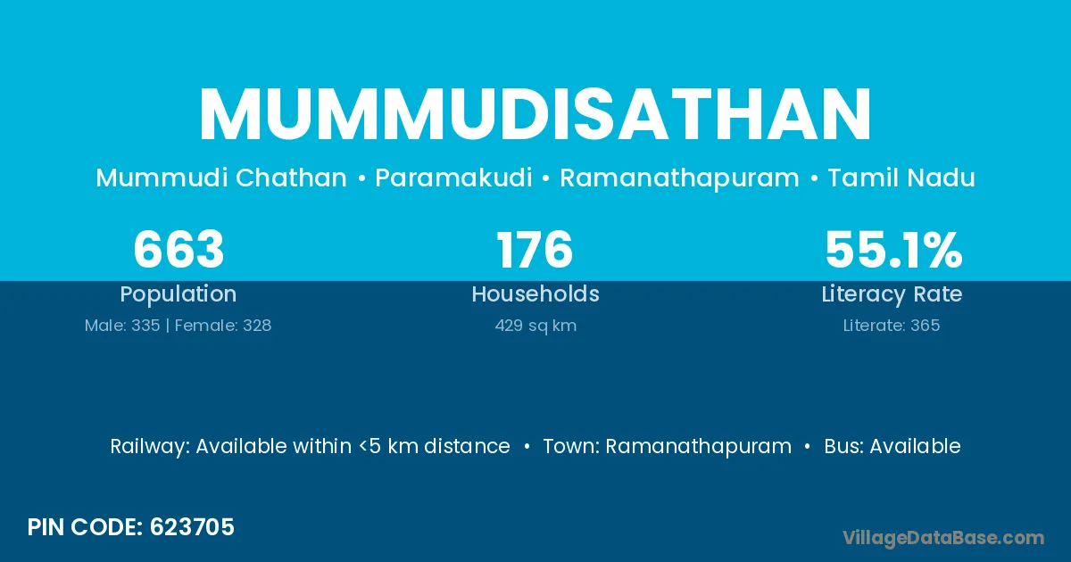 Ramanathapuram is the nearest town to Mummudisathan village for major economic activities