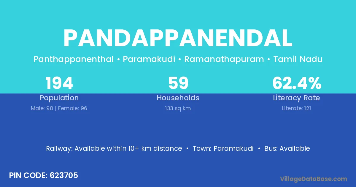 Paramakudi is the nearest town to Pandappanendal village for major economic activities