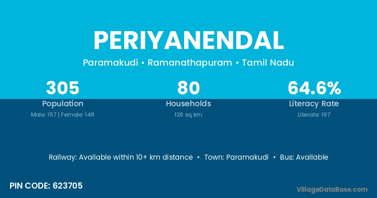 Paramakudi is the nearest town to Periyanendal village for major economic activities