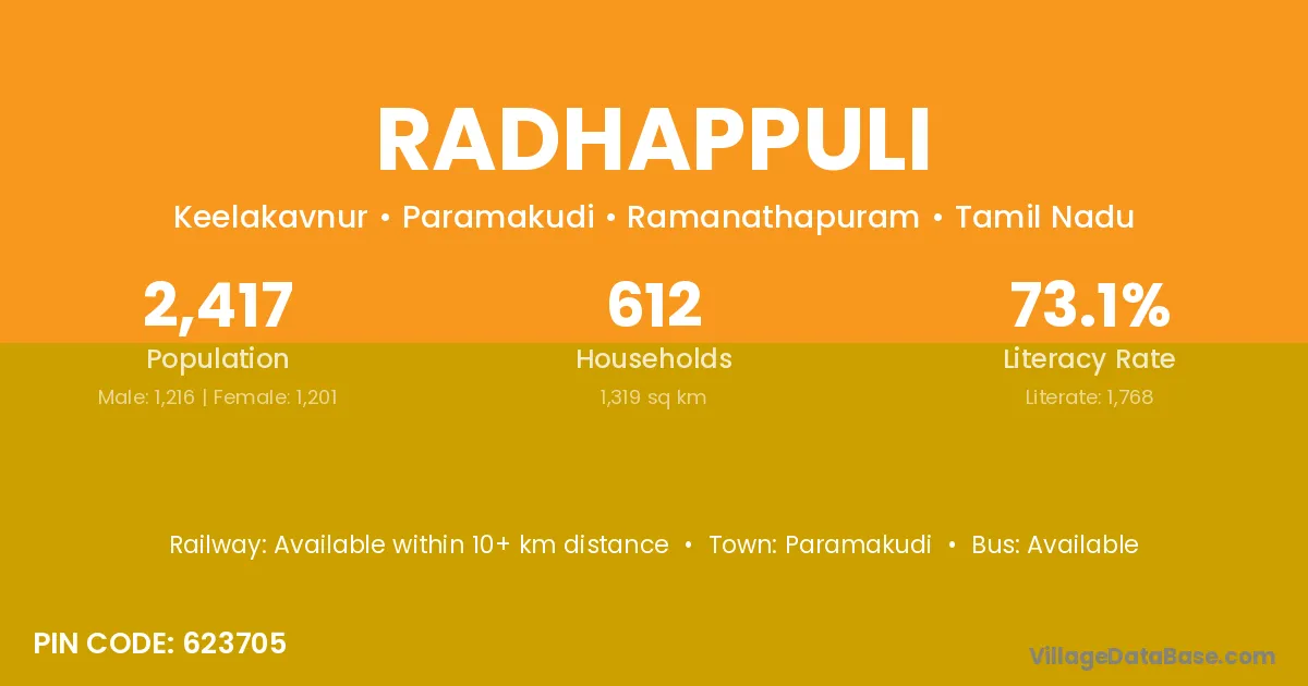 According to Census 2011 information, the village code of Radhappuli village is 623705.