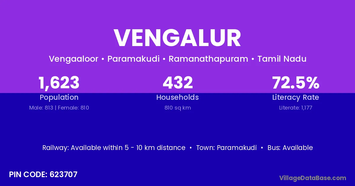 According to Census 2011 information, the village code of Vengalur village is 623707.