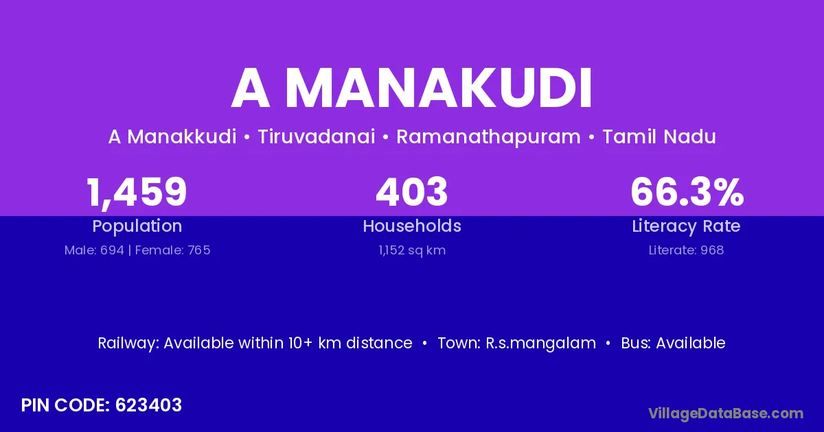 There are approximately 403 households in A Manakudi village.