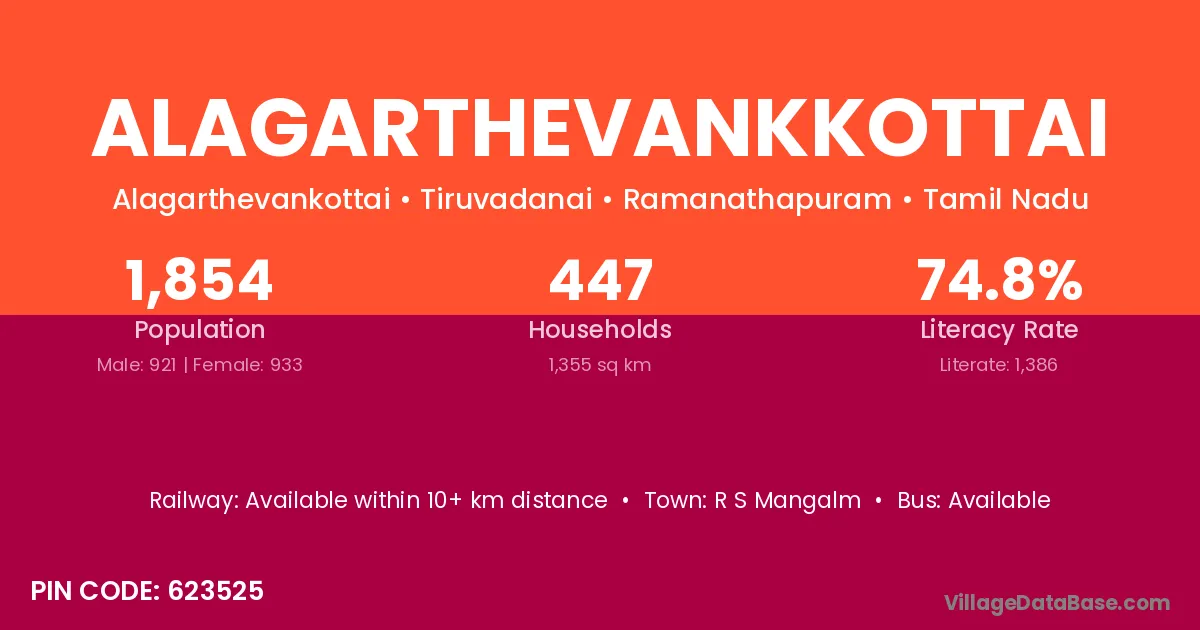 There are approximately 447 households in Alagarthevankkottai village.