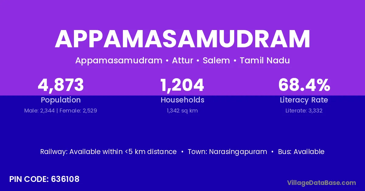 According to Census 2011 information, the village code of Appamasamudram village is 636108.