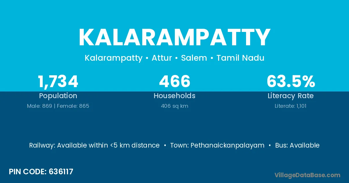 According to Census 2011 information, the village code of Kalarampatty village is 636117.