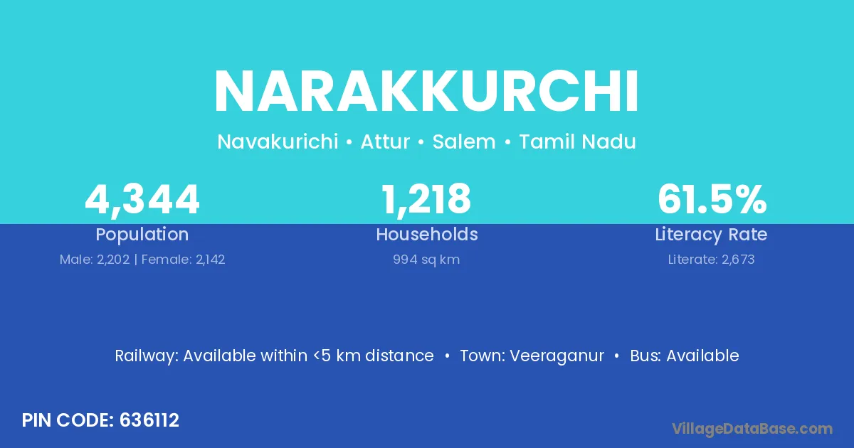 There are approximately 1,218 households in Narakkurchi village.