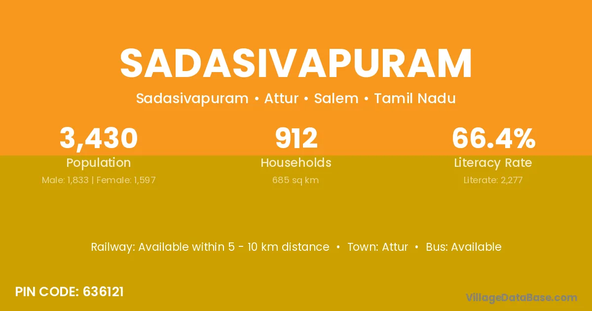 Attur is the nearest town to Sadasivapuram village for major economic activities