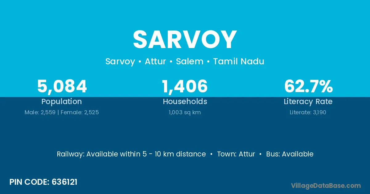 Attur is the nearest town to Sarvoy village for major economic activities