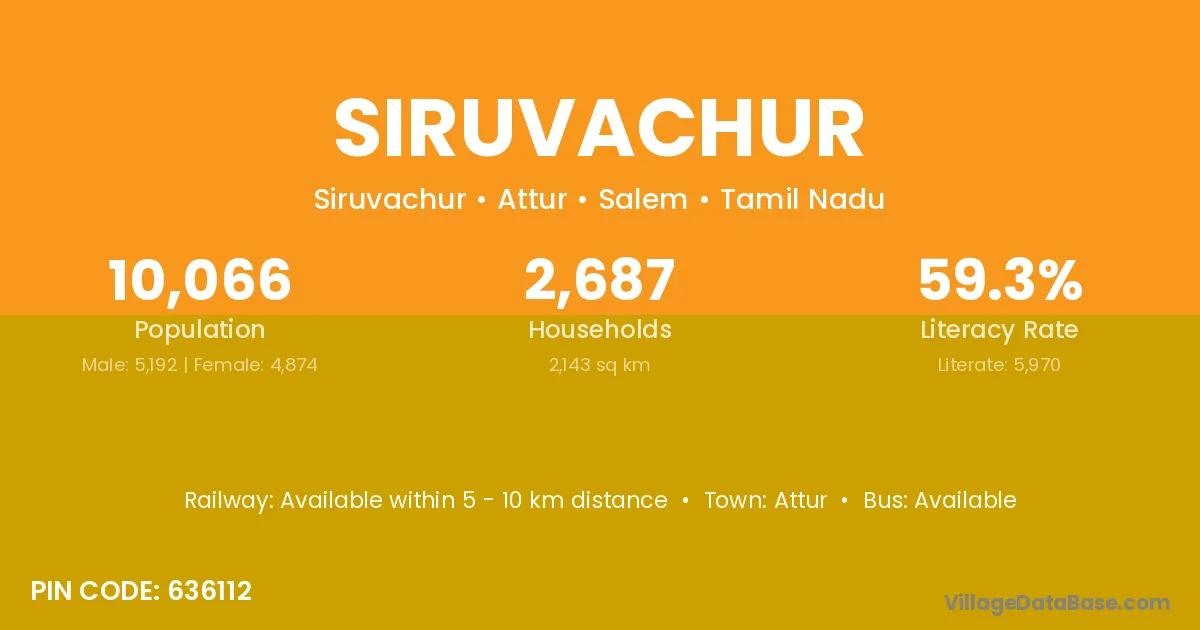 Attur is the nearest town to Siruvachur village for major economic activities