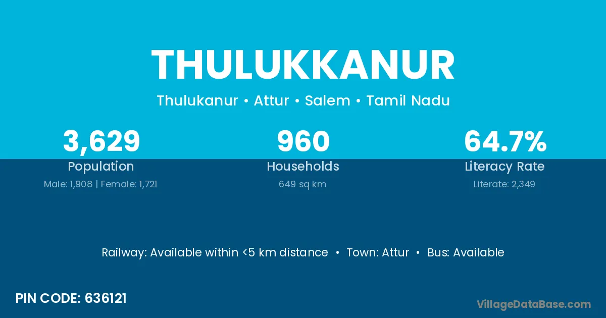 Attur is the nearest town to Thulukkanur village for major economic activities