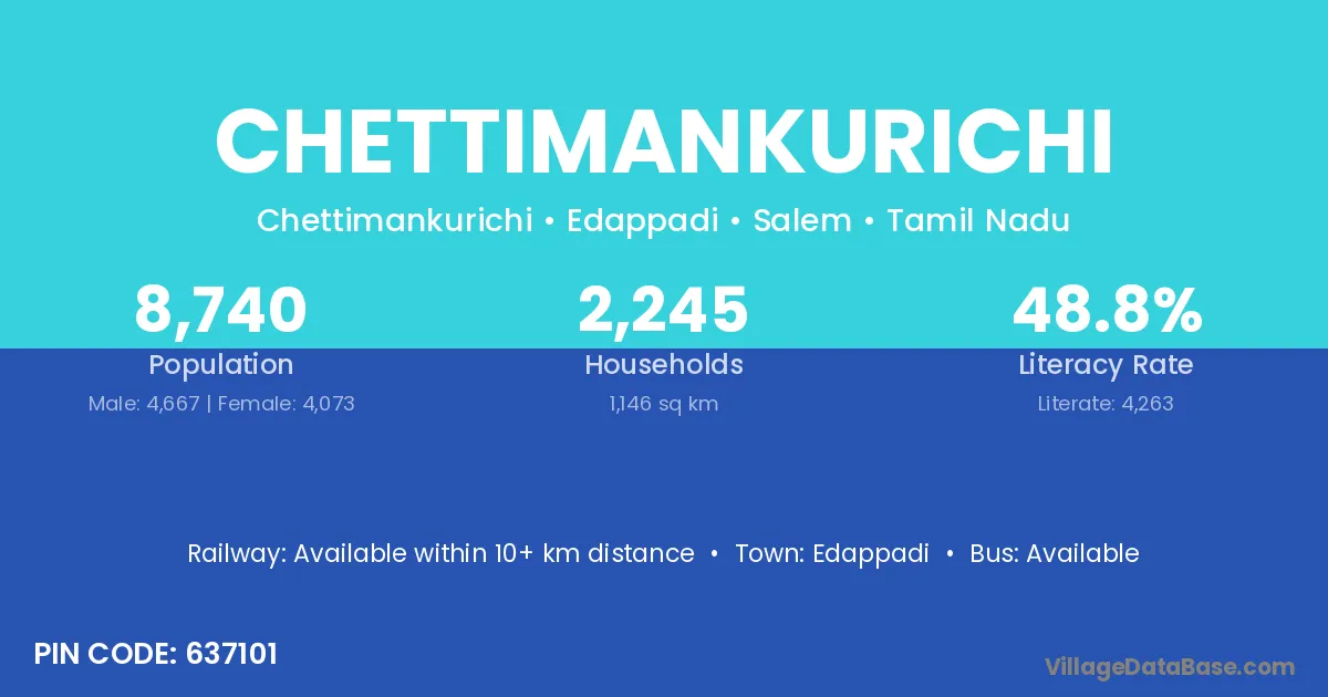 Edappadi is the nearest town to Chettimankurichi village for major economic activities