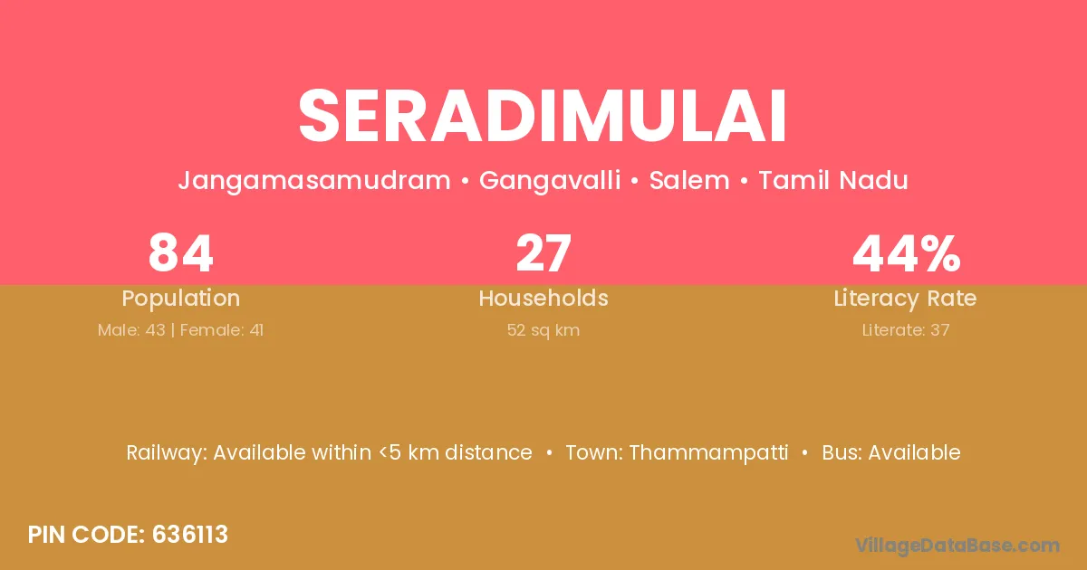 Thammampatti is the nearest town to Seradimulai village for major economic activities
