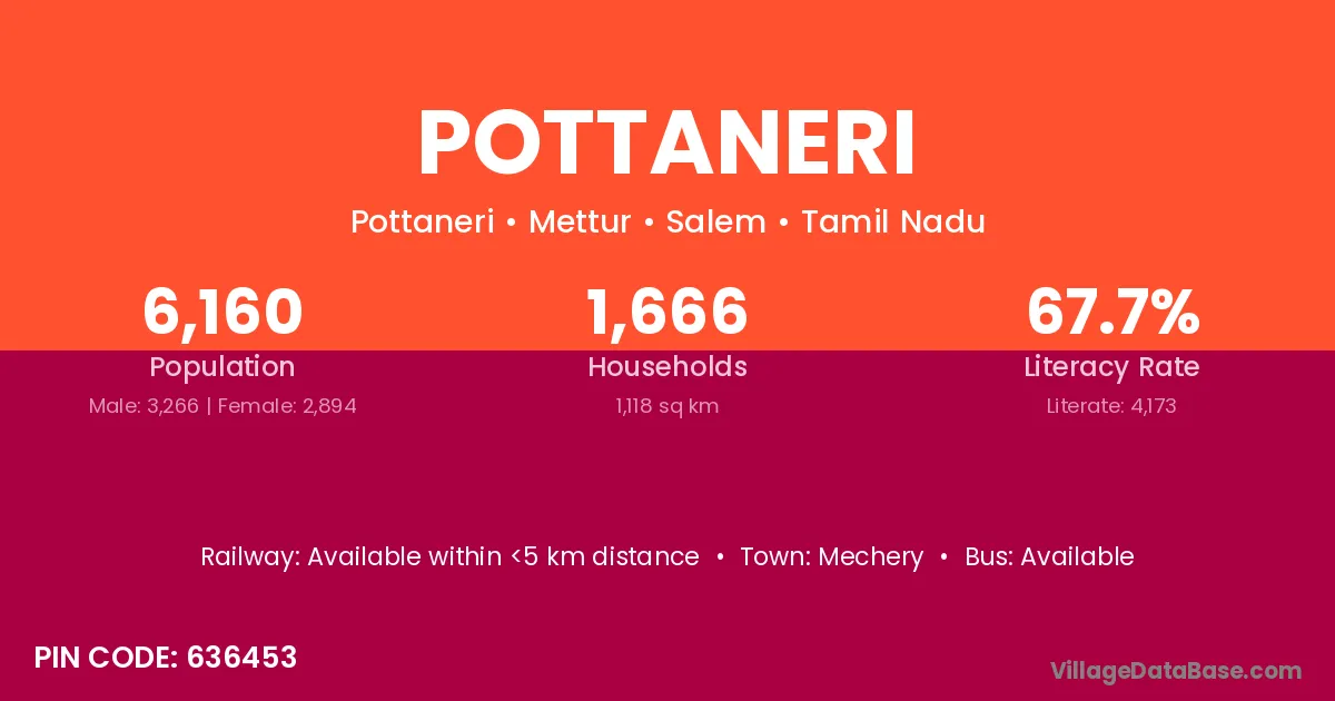 Pottaneri village has a total population of 6,160 people, of which 3,266 are males and 2,894 are females.