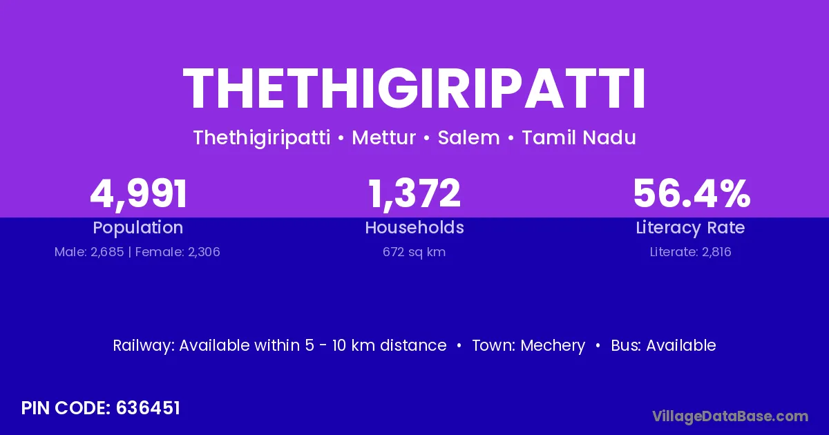 According to Census 2011 information, the village code of Thethigiripatti village is 636451.