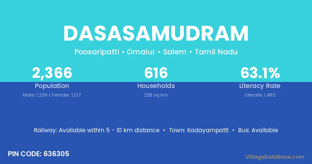 According to Census 2011 information, the village code of Dasasamudram village is 636305.