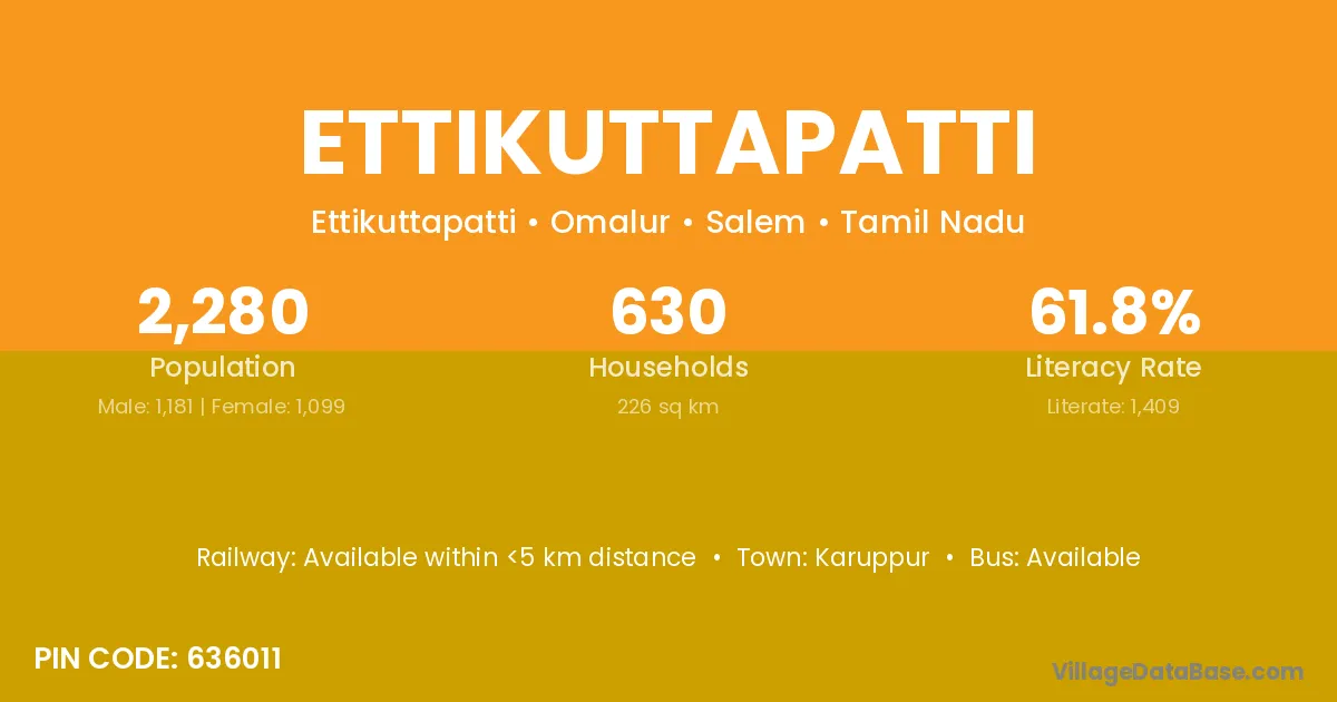 According to Census 2011 information, the village code of Ettikuttapatti village is 636011.