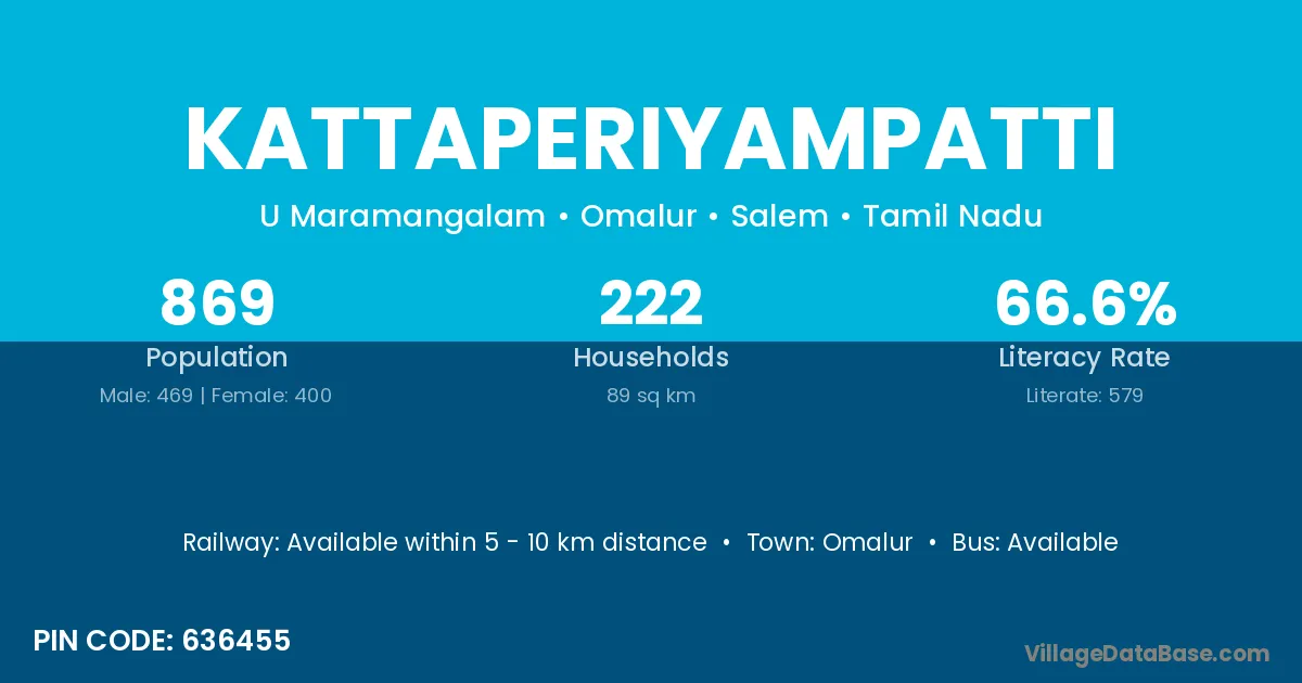 Omalur is the nearest town to Kattaperiyampatti village for major economic activities
