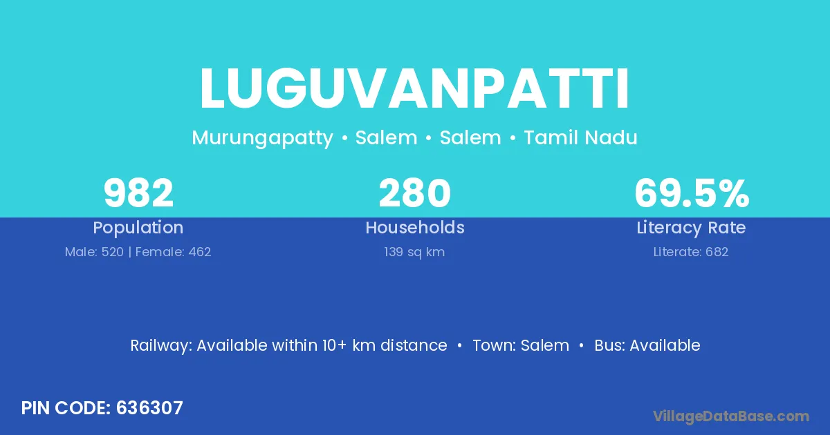 Salem is the nearest town to Luguvanpatti village for major economic activities