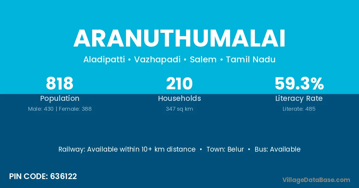Belur is the nearest town to Aranuthumalai village for major economic activities