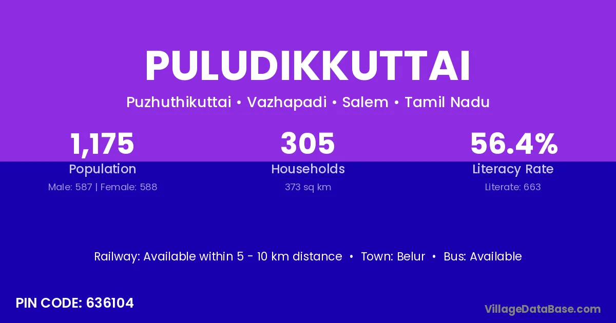 According to Census 2011 information, the village code of Puludikkuttai village is 636104.