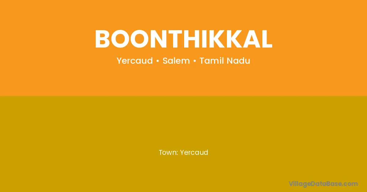 Yercaud is the nearest town to Boonthikkal village for major economic activities