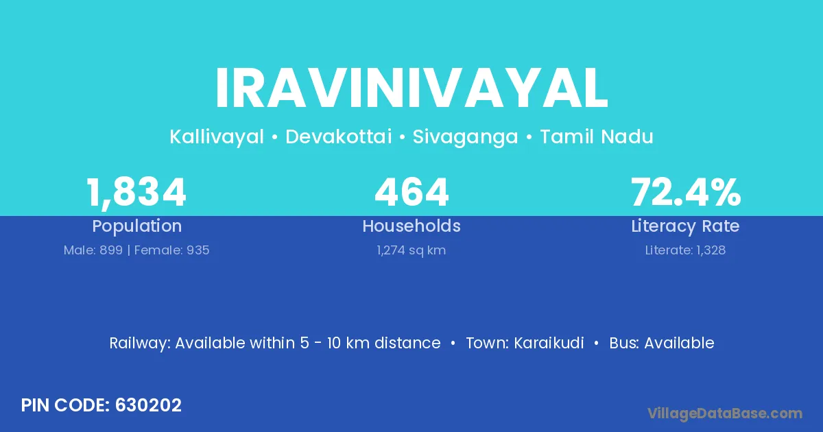 Karaikudi is the nearest town to Iravinivayal village for major economic activities