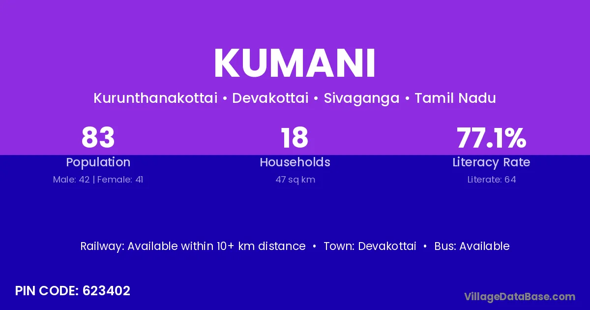 Devakottai is the nearest town to Kumani village for major economic activities