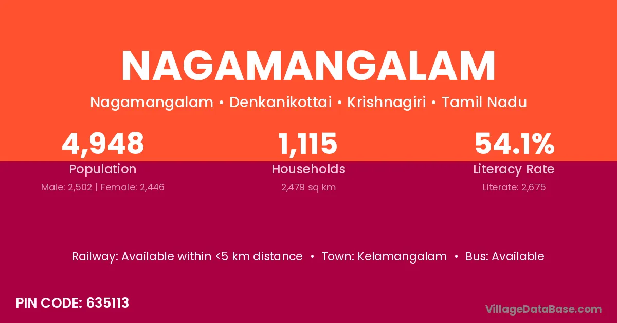 According to Census 2011 information, the village code of Nagamangalam village is 630318.