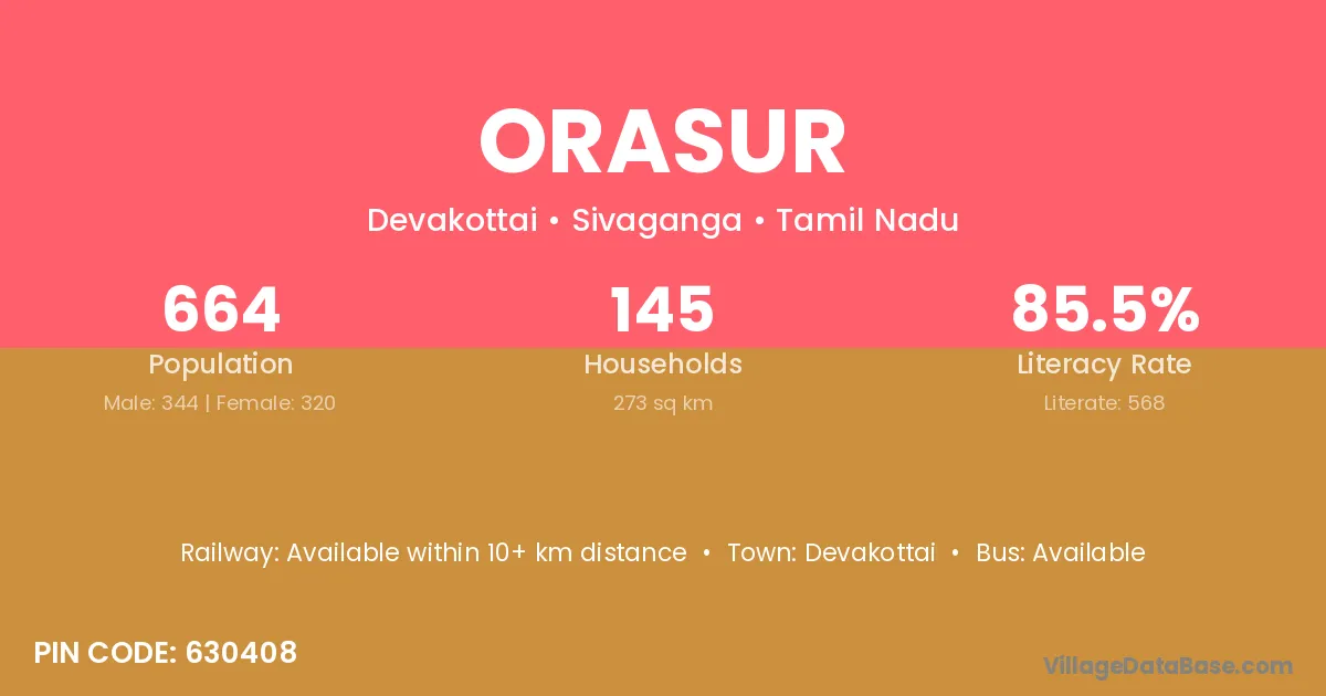According to Census 2011 information, the village code of Orasur village is 630408.