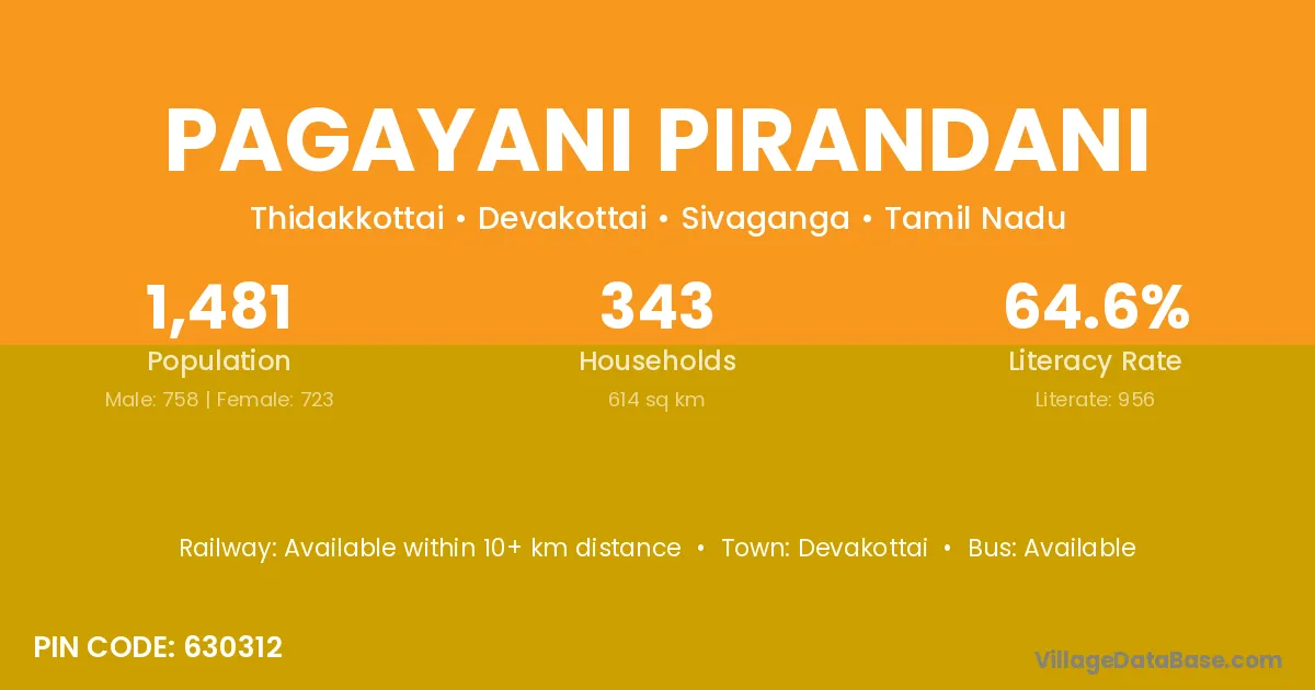 According to Census 2011 information, the village code of Pagayani Pirandani village is 630312.