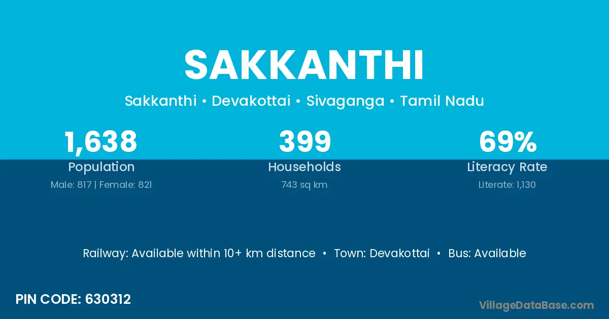 Devakottai is the nearest town to Sakkanthi village for major economic activities