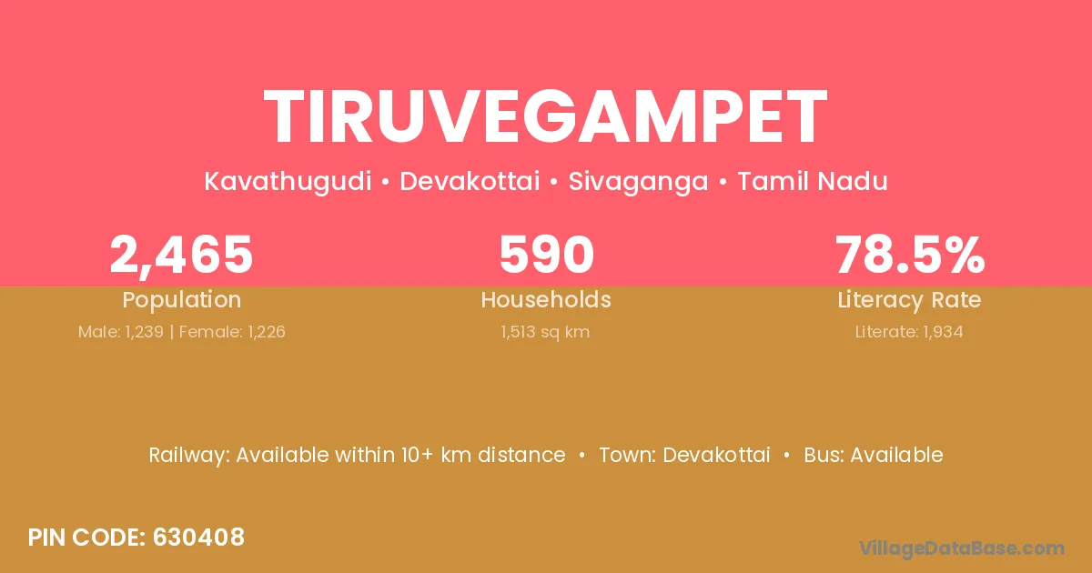 Devakottai is the nearest town to Tiruvegampet village for major economic activities