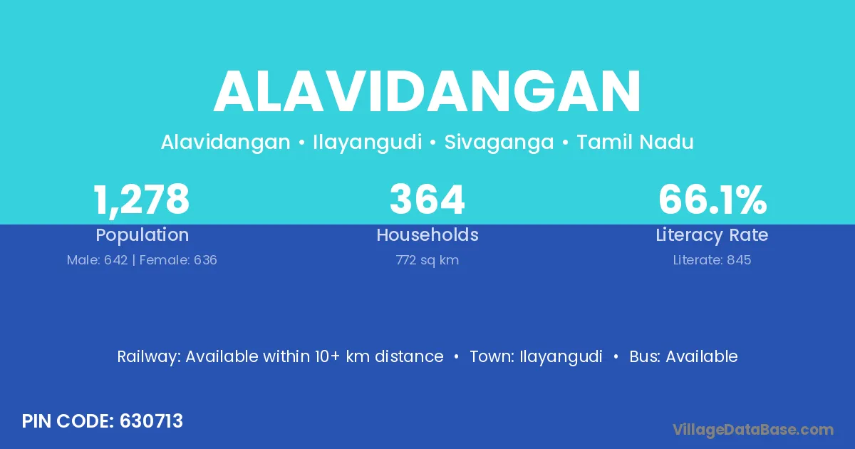Alavidangan village has a total population of 1,278 people, of which 642 are males and 636 are females.