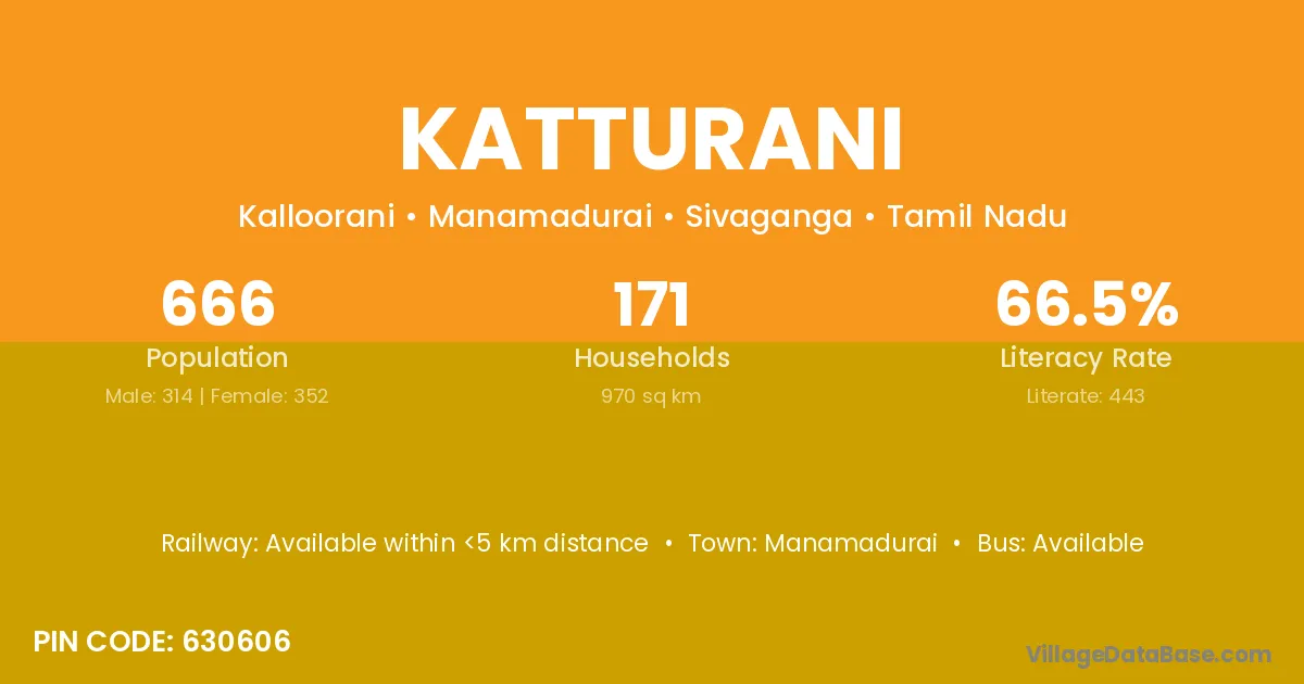 According to Census 2011 information, the village code of Katturani village is 630606.